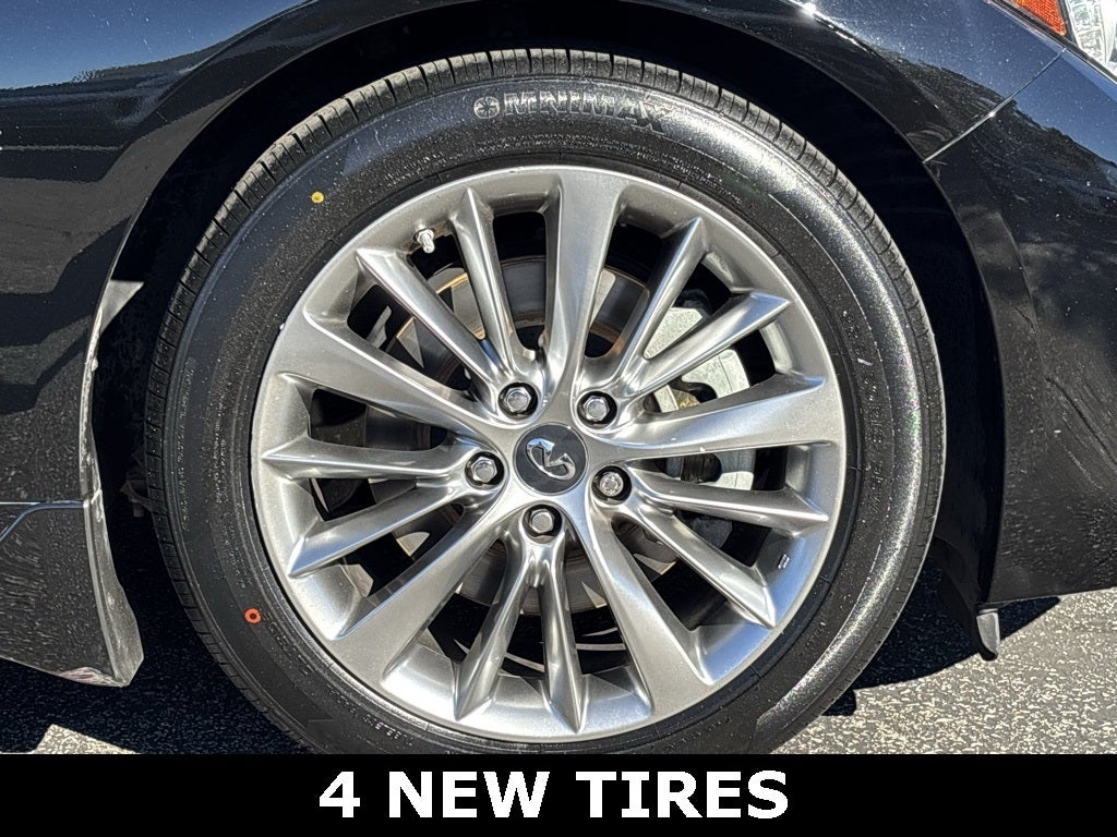This 2019 Black Obsidian INFINITI Q50 3.0t LUXE RWD is well equipped and includes these features and benefits: All Weather Package (L93) (All-Season Floor Mats and Trunk Protector), 18 x 7.5 Aluminum Alloy Wheels, 4-Wheel Disc Brakes, 6 Speakers, ABS brakes, Air Conditioning, Alloy wheels, AM/FM radio: SiriusXM, Anti-whiplash front head restraints, Auto-dimming Rear-View mirror, Automatic temperature control, Brake assist, Bumpers: body-color, CD player, Compass, Delay-off headlights, Driver door bin, Driver vanity mirror, Dual front impact airbags, Dual front side impact airbags, Electronic Stability Control, Four wheel independent suspension, Front anti-roll bar, Front Bucket Seats, Front Center Armrest, Front dual zone A/C, Front fog lights, Front reading lights, Fully automatic headlights, Garage door transmitter: HomeLink, Genuine wood console insert, Genuine wood dashboard insert, Genuine wood door panel insert, Heated door mirrors, Illuminated entry, Illuminated Kick Plates, Leather Shift Knob, Leather steering wheel, Leatherette Seating Surfaces, Literature Kit, Low tire pressure warning, Occupant sensing airbag, Outside temperature display, Overhead airbag, Overhead console, Panic alarm, Passenger door bin, Passenger vanity mirror, Power door mirrors, Power driver seat, Power moonroof, Power passenger seat, Power steering, Power windows, Radio data system, Radio: AM/FM/HD/CD w/MP3 Playback Capability, Rain sensing wipers, Rear anti-roll bar, Rear reading lights, Rear seat center armrest, Rear window defroster, Remote keyless entry, Security system, Speed control, Speed-sensing steering, Speed-Sensitive Wipers, Splash Guards, Steering wheel mounted audio controls, Tachometer, Telescoping steering wheel, Tilt steering wheel, Traction control, Trip computer, Turn signal indicator mirrors, and Variably intermittent wipers. Clean CARFAX. RWD 7-Speed Automatic with Overdrive