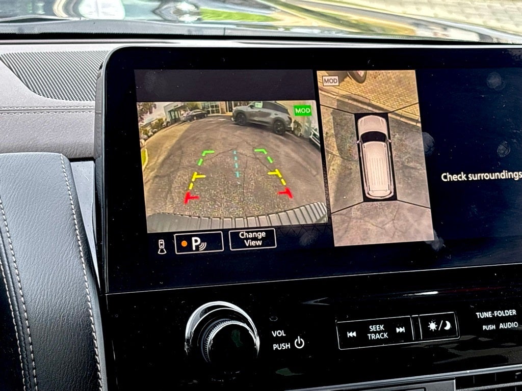 Certified. This 2023 Super Black Nissan Armada Platinum 4WD is well equipped and includes these features and benefits: Captain's Chairs Package (2nd Row Captain's Chairs and 2nd Row Center Console w/Padded Armrest), Cargo Package, Nissan Certified Certified, 4WD, 13 Speakers, 2.94 Axle Ratio, 3rd Row Carpeted Floor Mats - Captain Seat, 3rd row seats: split-bench, 4-Wheel Disc Brakes, A/V remote, ABS brakes, Air Conditioning, Alloy wheels, AM/FM radio: SiriusXM, Anti-whiplash front head restraints, Auto High-beam Headlights, Auto tilt-away steering wheel, Auto-dimming door mirrors, Auto-dimming Rear-View mirror, Auto-leveling suspension, Automatic temperature control, Bose 13-Speaker Premium Audio System, Brake assist, Bumpers: body-color, Climate-Controlled Front Bucket Seats, Cross Bars, Delay-off headlights, Driver door bin, Driver vanity mirror, Dual front impact airbags, Dual front side impact airbags, Electronic Stability Control, Emergency communication system: NissanConnect Services, Exterior Parking Camera Rear, Four wheel independent suspension, Front anti-roll bar, Front Bucket Seats, Front Center Armrest, Front dual zone A/C, Front fog lights, Front reading lights, Fully automatic headlights, Garage door transmitter: HomeLink, Headphones, Heated door mirrors, Heated front seats, Heated rear seats, Heated steering wheel, Illuminated entry, Illuminated Kick Plates, Illuminated Scuff Plate, Knee airbag, Leather Shift Knob, Low tire pressure warning, Memory seat, Navigation System, Nissan USB Charging Cable Set, NissanConnect featuring Apple CarPlay and Android Auto, Occupant sensing airbag, Outside temperature display, Overhead airbag, Overhead console, Panic alarm, Passenger door bin, Passenger vanity mirror, Power door mirrors, Power driver seat, Power Liftgate, Power moonroof, Power passenger seat, Power steering, Power windows, Premium audio system: Bose, Quilted Leather Seat Trim, Radio: NissanConnect w/SiriusXM, Rain sensing wipers, Rear air conditioning, Rear anti-roll bar, Rear reading lights, Rear seat center armrest, Rear window defroster, Rear window wiper, Rear-Seat Entertainment, Reclining 3rd row seat, Remote keyless entry, Security system, Speed control, Speed-sensing steering, Speed-Sensitive Wipers, Split folding rear seat, Spoiler, Steering wheel memory, Steering wheel mounted audio controls, Tachometer, Telescoping steering wheel, Tilt steering wheel, Traction control, Trip computer, Turn signal indicator mirrors, Variably intermittent wipers, Ventilated front seats, Voltmeter, Welcome Lighting, and Wheels: 22 x 8J Machine-Faced w/Tinted Clear Coat. 4WD. CARFAX One-Owner. Clean CARFAX. 4WD 7-Speed Automatic