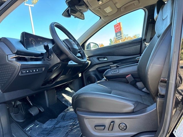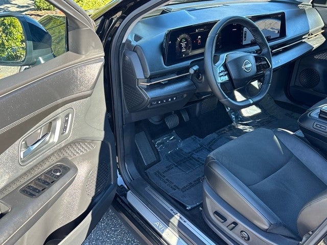 Certified. This 2024 Black Diamond Pearl Nissan Ariya ENGAGE e-4ORCE AWD is well equipped and includes these features and benefits: EV Certified Certified, 19 Alloy Wheels, 4-Wheel Disc Brakes, 6 Speakers, ABS brakes, Air Conditioning, Alloy wheels, AM/FM radio: SiriusXM, Auto High-beam Headlights, Automatic temperature control, Black Painted Splash Guards, Brake assist, Bumpers: body-color, Carpeted Floor Mats & First Aid Kit, Delay-off headlights, Driver door bin, Driver vanity mirror, Dual front impact airbags, Dual front side impact airbags, Electronic Stability Control, Emergency communication system: NissanConnect EV & Services, Four wheel independent suspension, Front anti-roll bar, Front Bucket Seats, Front Center Armrest, Front dual zone A/C, Front reading lights, Heads-Up Display, Heated door mirrors, Heated Front Bucket Seats, Heated front seats, Heated rear seats, Heated steering wheel, Illuminated entry, Illuminated Kick Plates, Knee airbag, Leather steering wheel, Leatherette Seating Surfaces, Low tire pressure warning, Memory seat, Navigation system: Nissan Door to Door Connected Navigation, Occupant sensing airbag, Outside temperature display, Overhead airbag, Panic alarm, Passenger door bin, Passenger vanity mirror, Power door mirrors, Power driver seat, Power steering, Power windows, Radio: AM/FM Audio System, Rear anti-roll bar, Rear reading lights, Rear seat center armrest, Rear side impact airbag, Rear window defroster, Rear window wiper, Remote keyless entry, Security system, Speed control, Speed-sensing steering, Speed-Sensitive Wipers, Split folding rear seat, Spoiler, Steering wheel mounted audio controls, Telescoping steering wheel, Tilt steering wheel, Traction control, Trip computer, and Variably intermittent wipers. CARFAX One-Owner. Clean CARFAX. Odometer is 4100 miles below market average! AWD CVT
